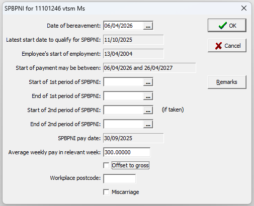 From 6th April 2026, a new Statutory payment, Statutory Parental Bereavement Pay for Northern Ireland will be available. In the desktop version this will be available as a new button in the header on both Modify employee details, and in Enter payroll details.
