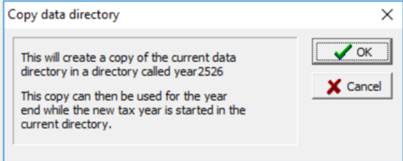 Once that option is selected, a message box will appear asking you to confirm. Click OK to continue. Payroll will then create a folder called year2526 winpay folder.