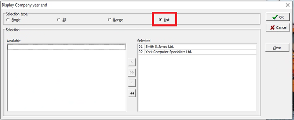 The next screen allows the user to select which companies to be processed. Choose list view to display the companies, or simply click all if you want all companies to be processed.