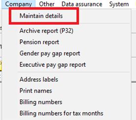If you have any split companies, you will need to check each company individually. To do this, go to Company across the top menu bar and then maintain details.